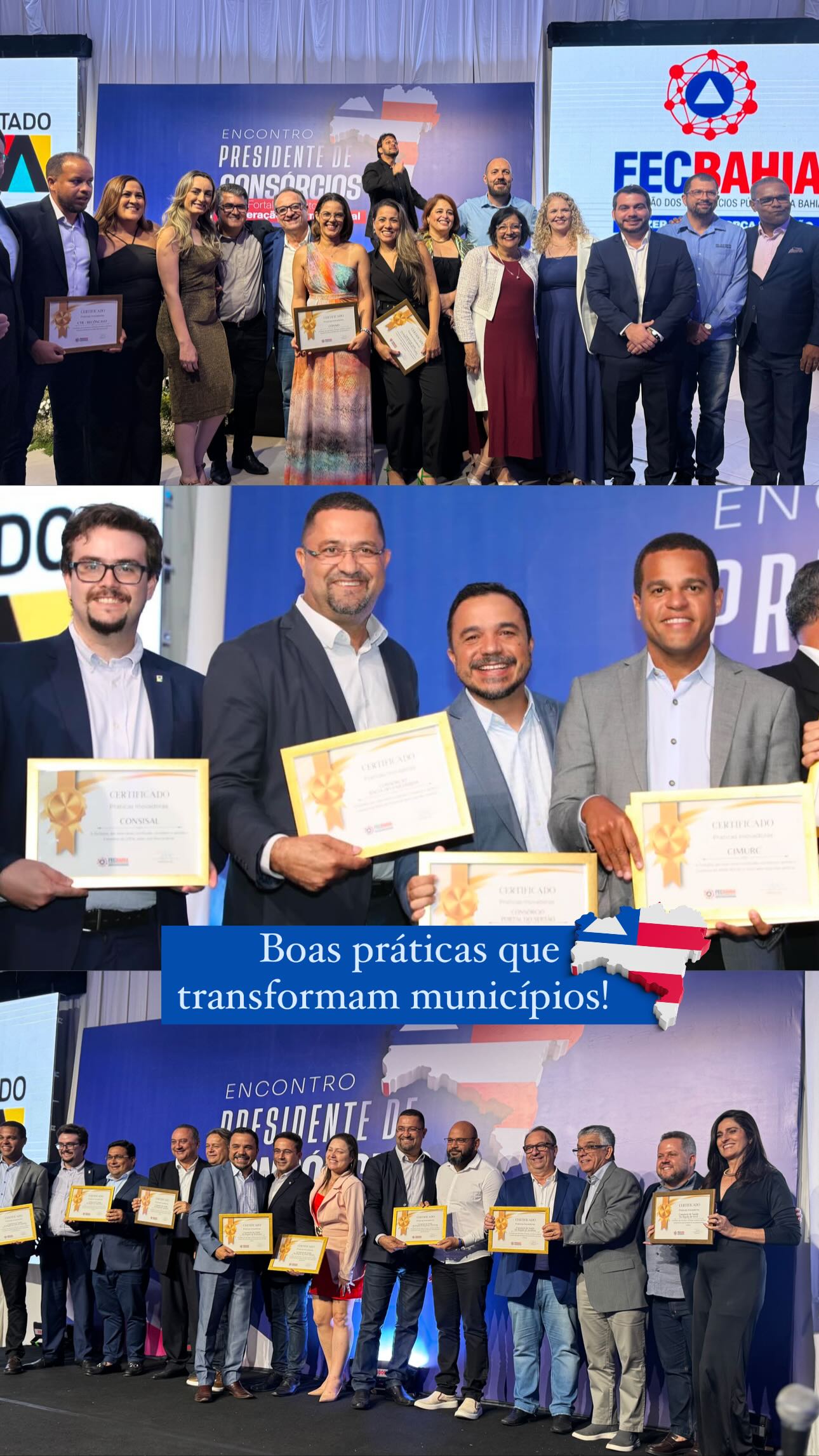 Reconhecemos o trabalho dos consórcios que receberam o Certificado de Boas Práticas, destacando ações fundamentais como regularização fundiária, agricultura familiar, pavimentação, infraestrutura e gestão de saúde. Essa conquista reflete o compromisso com o desenvolvimento dos municípios baianos e a melhoria na qualidade de vida da população. União e força pelo desenvolvimento da Bahia!