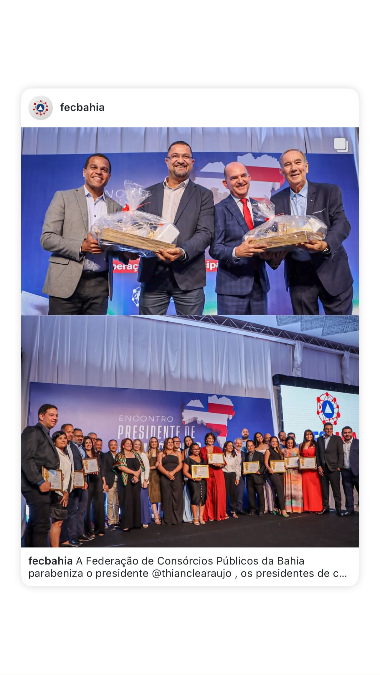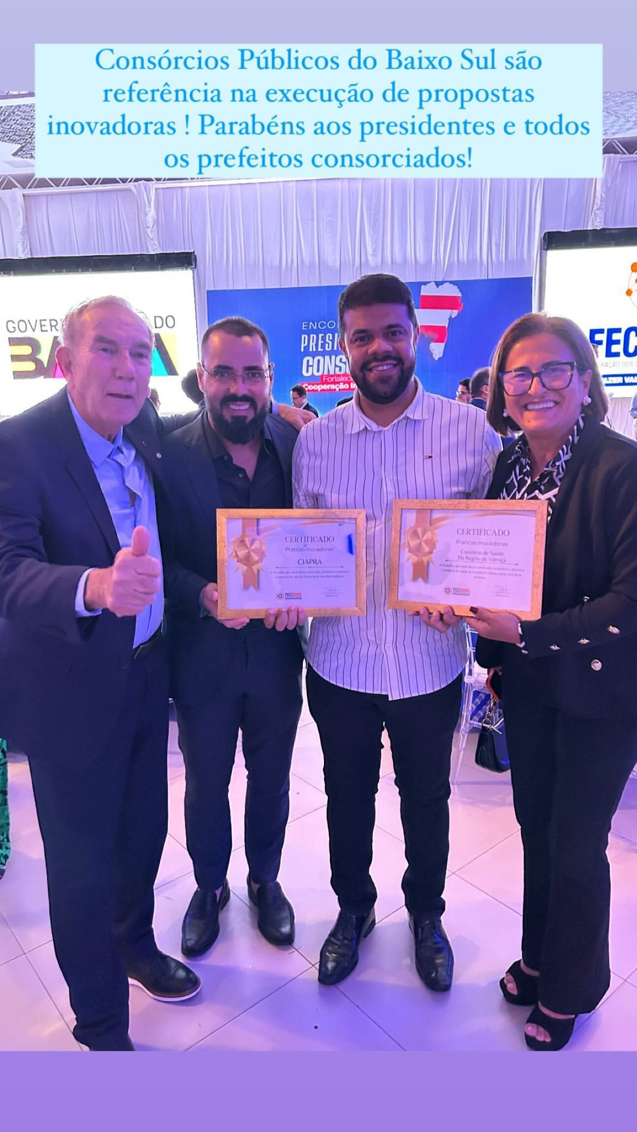 A Federação de Consórcios Públicos da Bahia parabeniza o presidente @thianclearaujo , os presidentes de consórcios, secretários executivos e diretores pela parceria e pelo trabalho exemplar que vem transformando os municípios baianos.