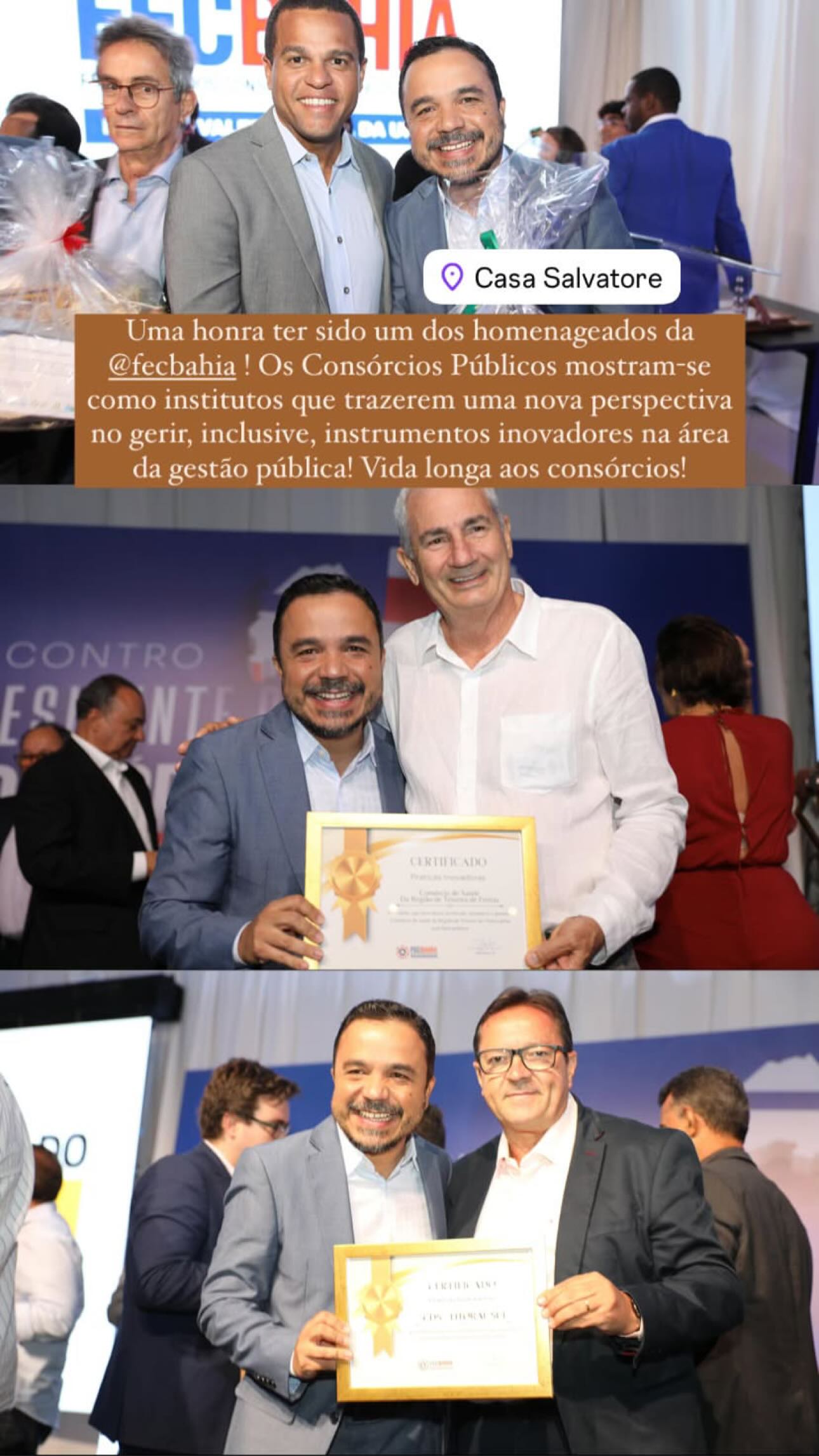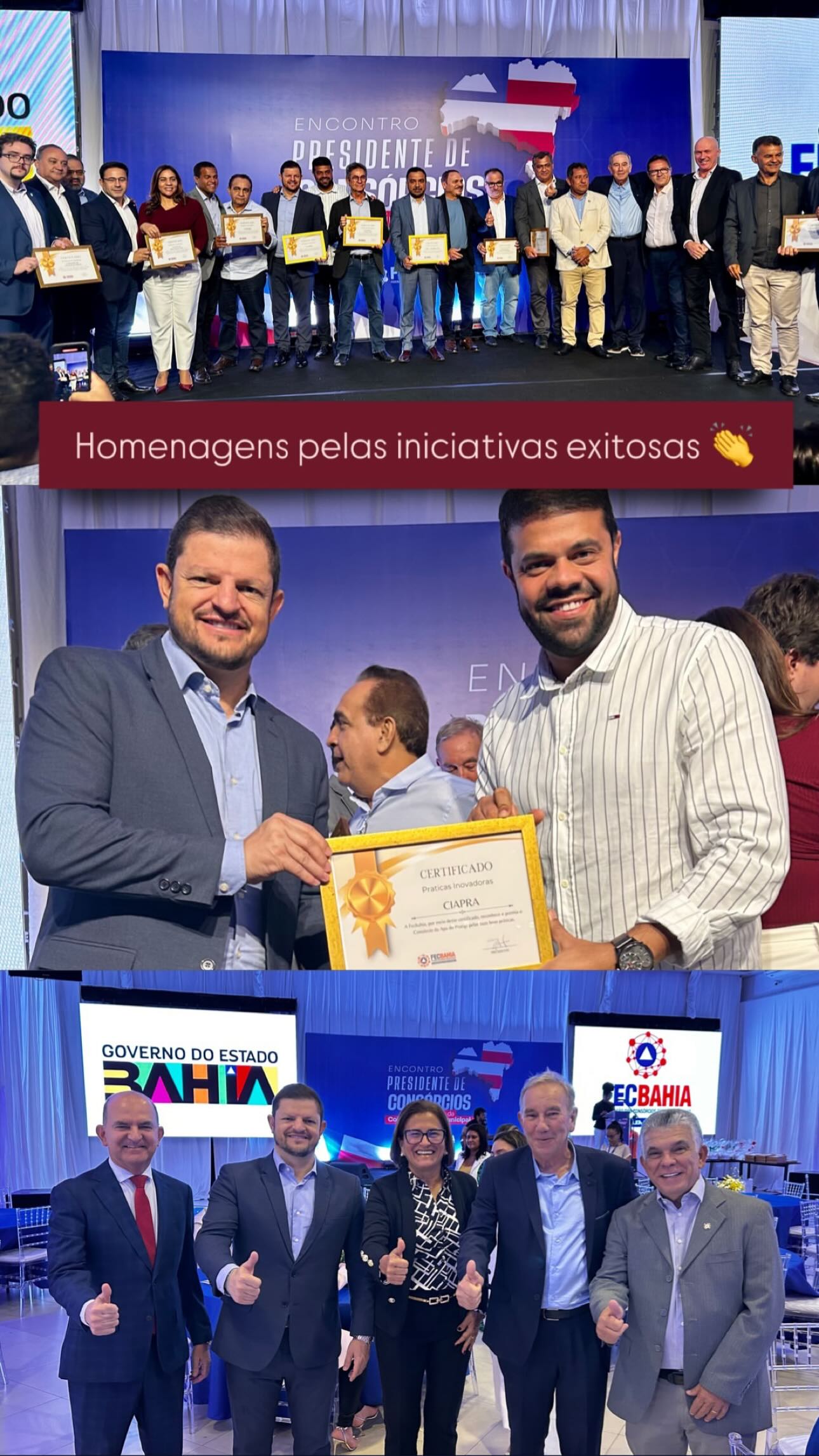 Reconhecemos o trabalho dos consórcios que receberam o Certificado de Boas Práticas, destacando ações fundamentais como regularização fundiária, agricultura familiar, pavimentação, infraestrutura e gestão de saúde. Essa conquista reflete o compromisso com o desenvolvimento dos municípios baianos e a melhoria na qualidade de vida da população. União e força pelo desenvolvimento da Bahia!